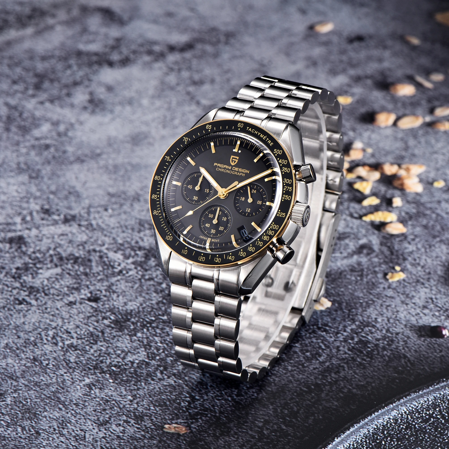 Equipped with the Japanese Seiko VK63 quartz chronograph, this model delivers smooth operation and reliable timekeeping performance trusted worldwide.